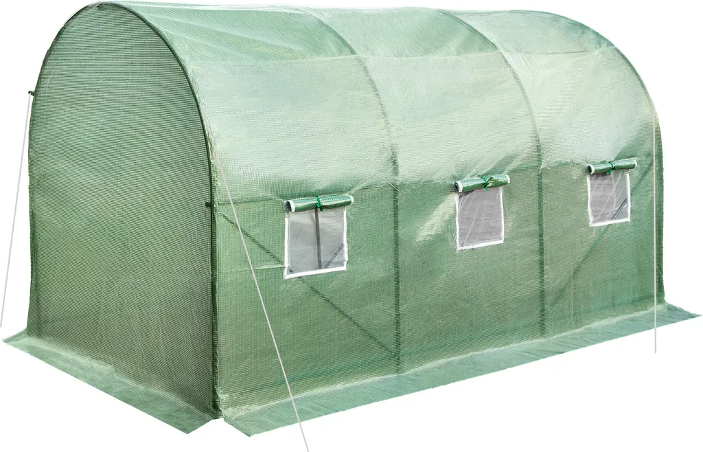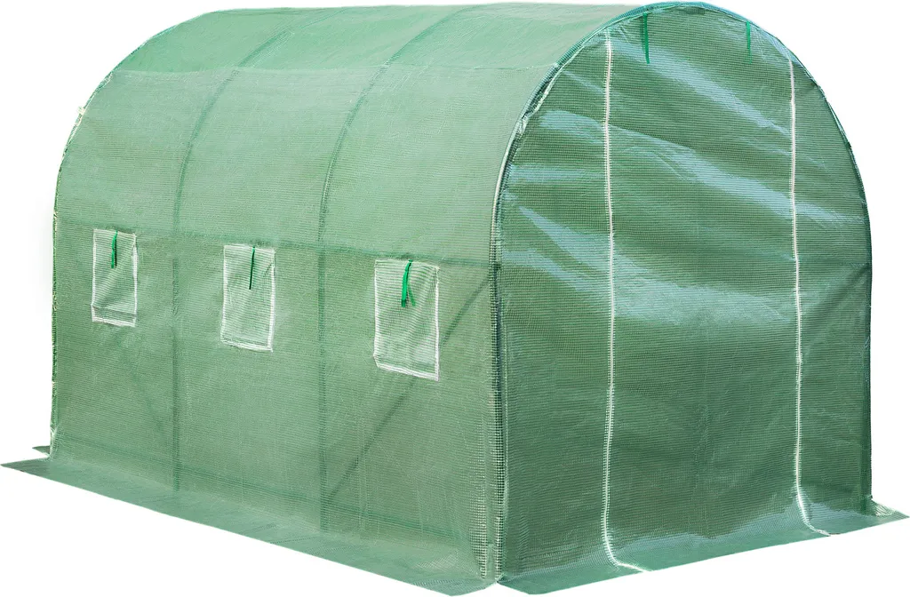 Tectake Foliengewächshaus In Tunnelform Mit 6 Fenstern 343x200x200cm – Grün