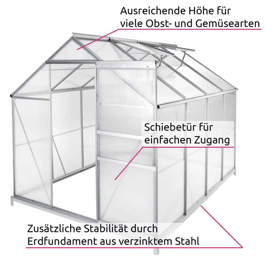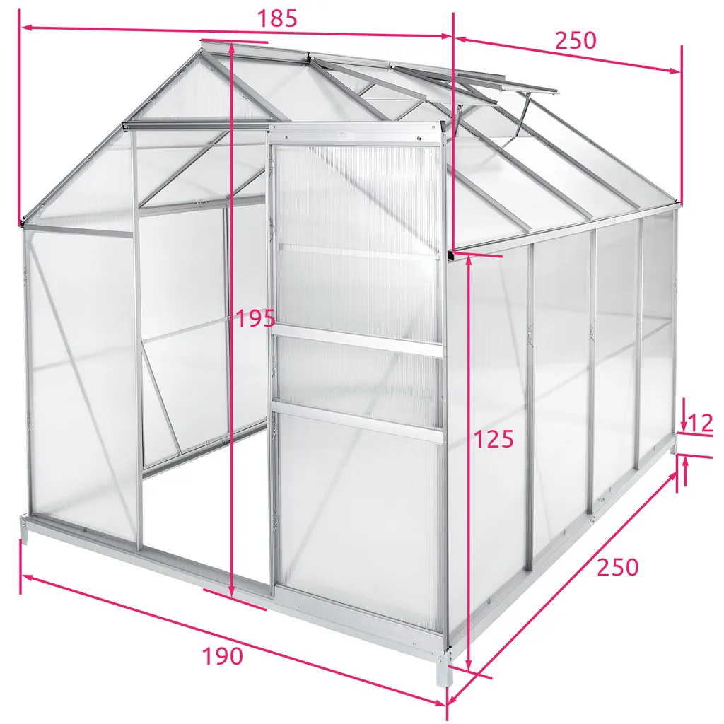 Tectake Gewächshaus Aus Aluminium Mit Fundament – 250 X 185 X 195 Cm
