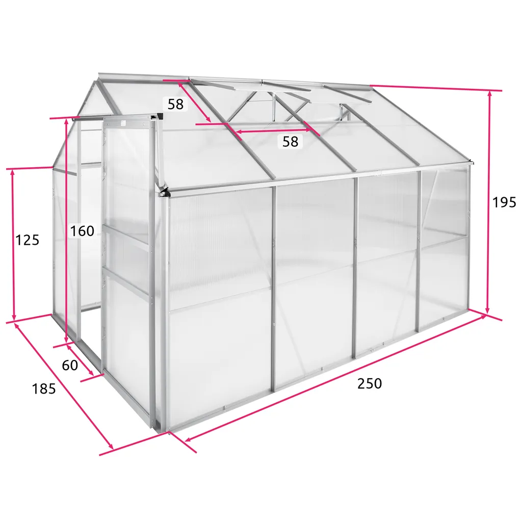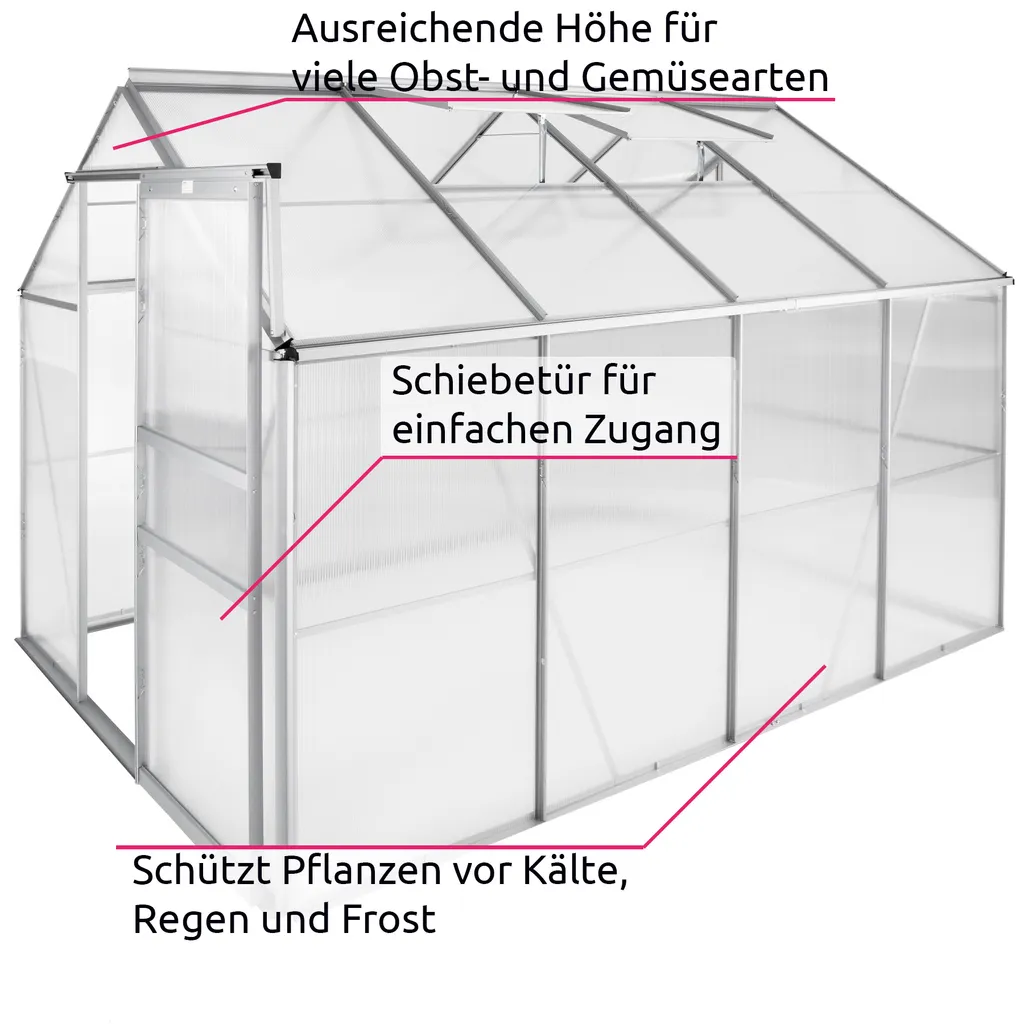Tectake Gewächshaus Aus Aluminium Ohne Fundament – 250 X 185 X 195 Cm