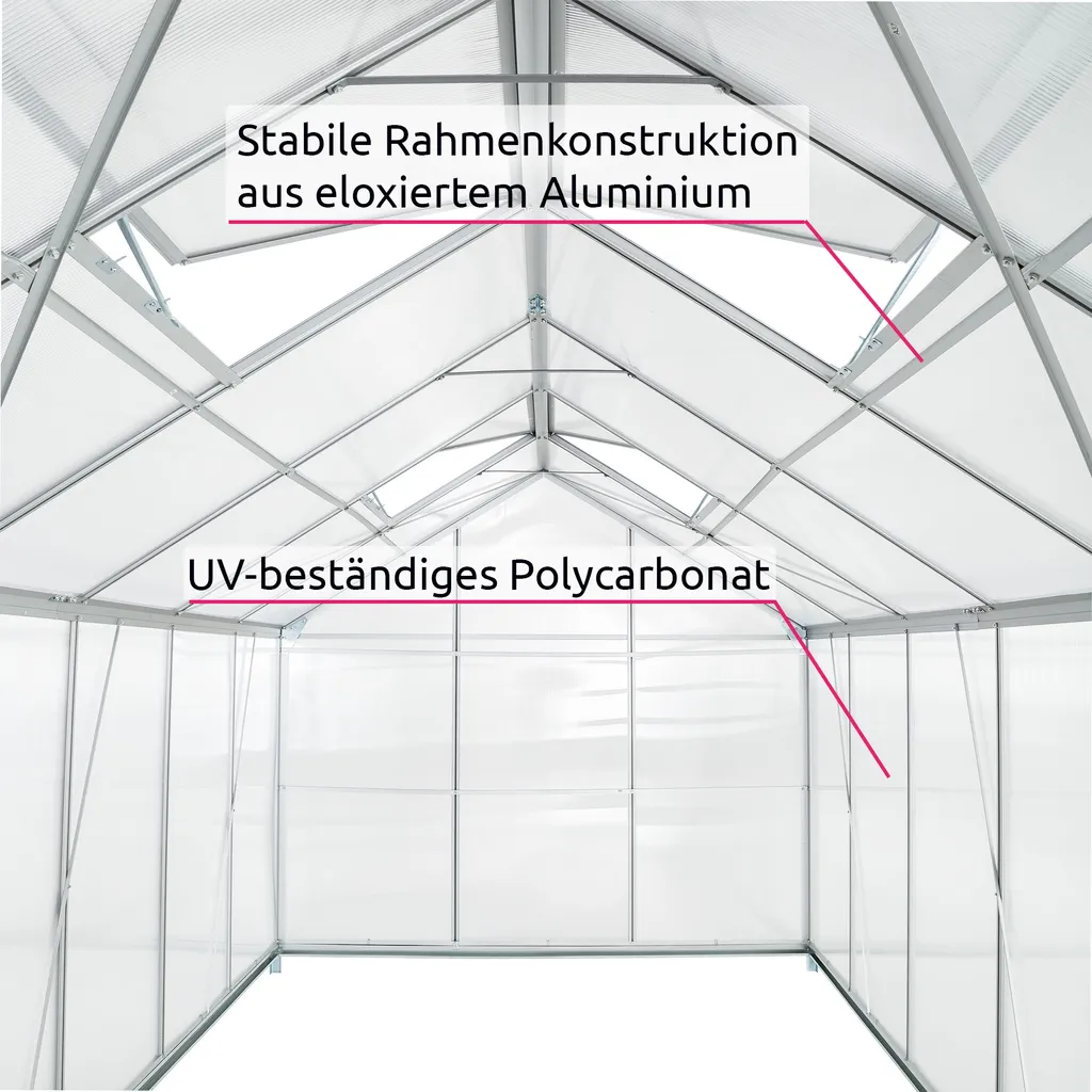 Tectake Gewächshaus Aus Aluminium Ohne Fundament – 375 X 185 X 195 Cm