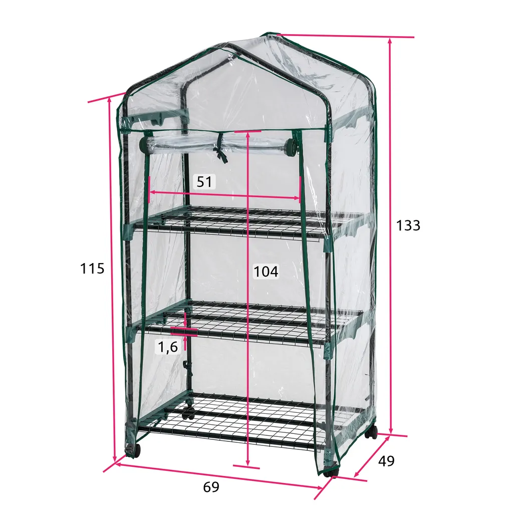 Tectake Mobiles Foliengewächshaus Mit 3 Ablagen 69x49x133cm – Transparent