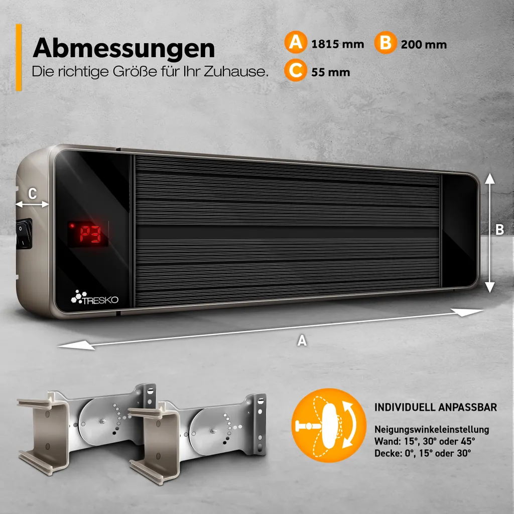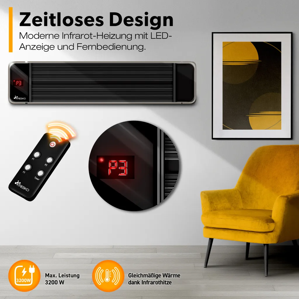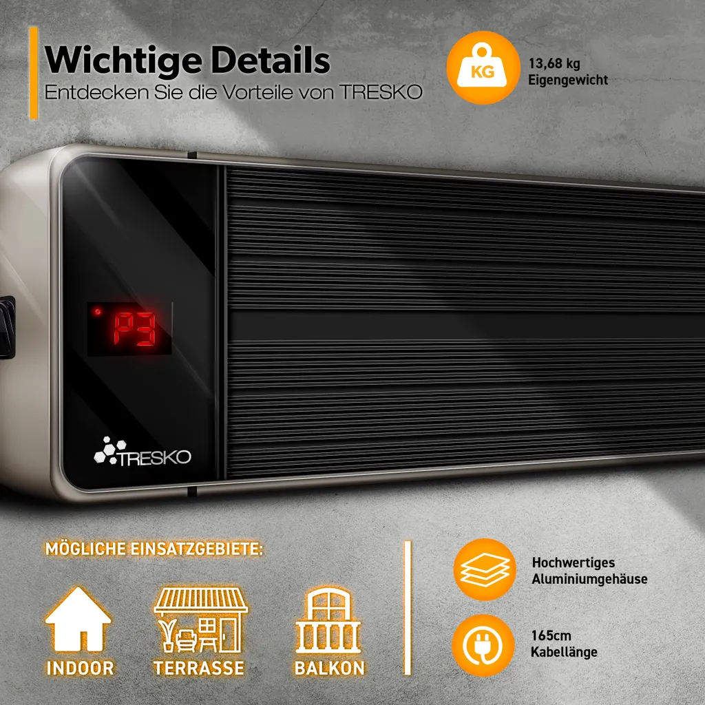 TRESKO® Dunkelheizstrahler 3200 Watt Infrarot Heizstrahler Schwarzstrahler Terrassenstrahler Schwarz IRD