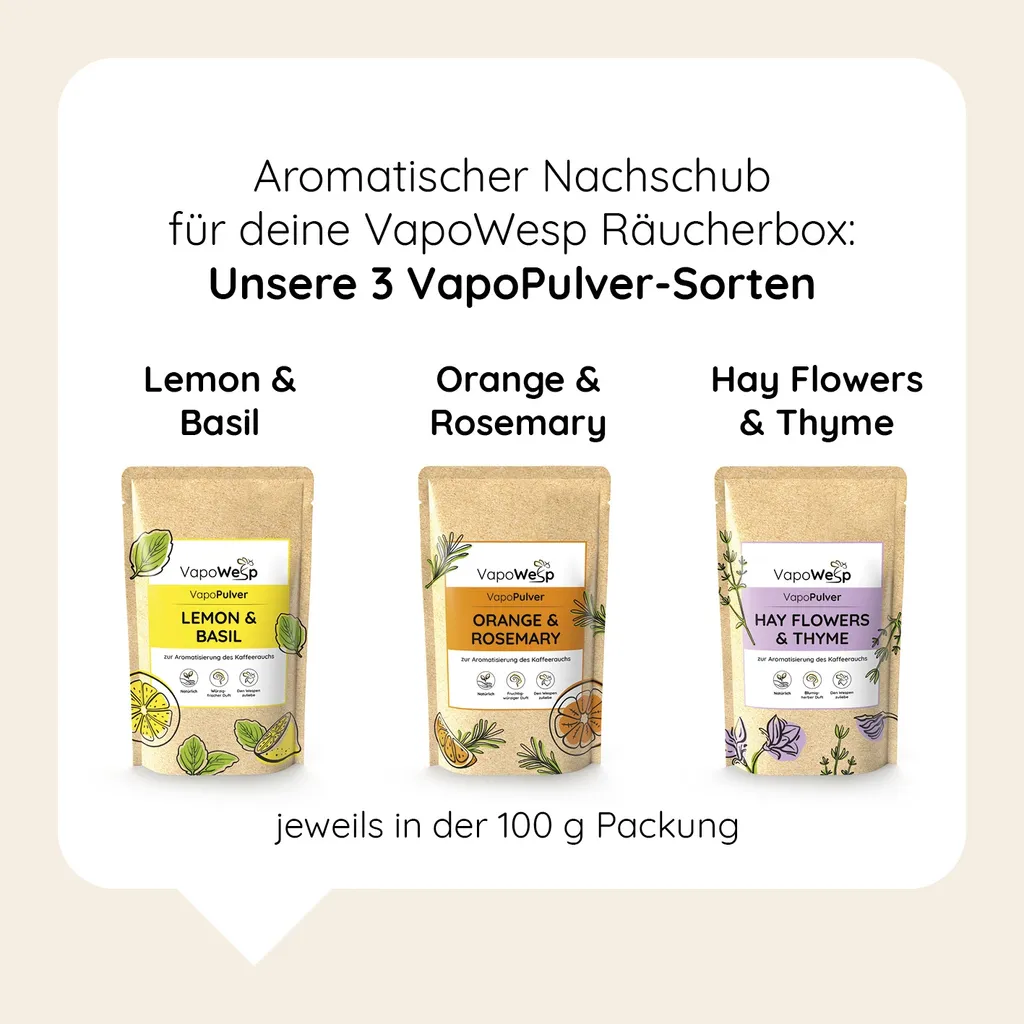 VapoWesp Räucherbox Inkl. Pulver Orange & Rosemary (50 G) Wespen Schutz Vertreiben DHDL Höhle Der Löwen Vapu Wasp Näturlich Bienenfreundlich