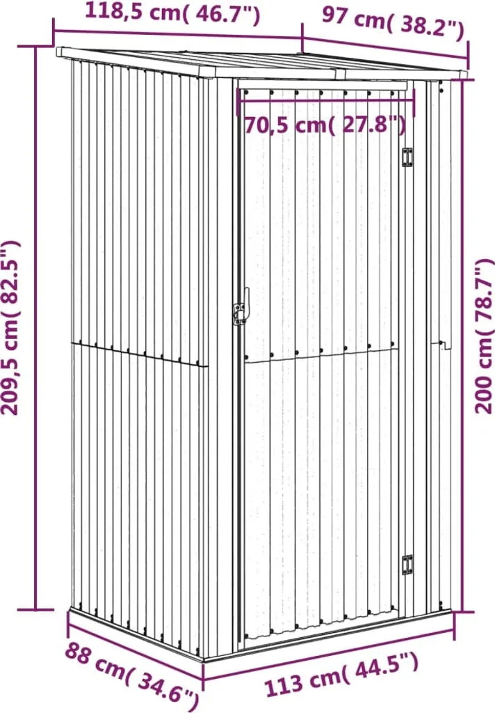 VidaXL Geräteschuppen Anthrazit 118,5x97x209,5 Cm Verzinkter Stahl
