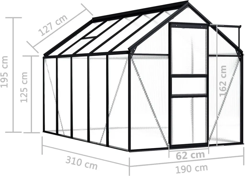 VidaXL Gewächshaus Anthrazit Aluminium 5,89 M²