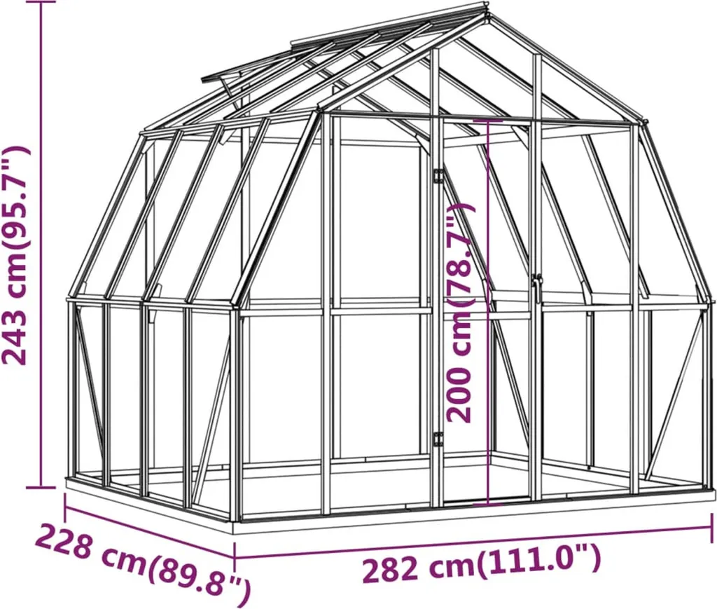 VIDAXL Gewächshaus Mit Fundamentrahmen Anthrazit 6,43 M² Aluminimum