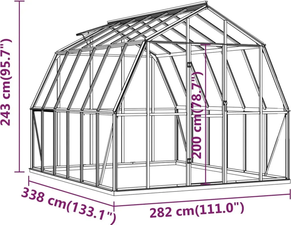 VidaXL Gewächshaus Mit Fundamentrahmen Anthrazit 9,53 M² Aluminimum