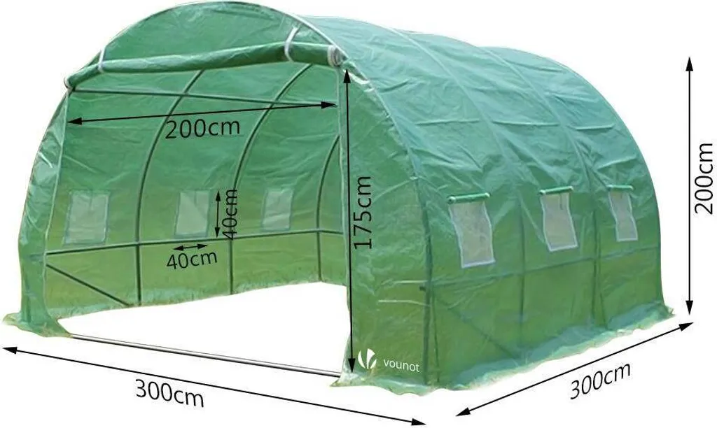 VOUNOT Gewächshaus Foliengewächshaus Winterfest Tomatenhaus Folientunnel, 3x3x2m 9m²