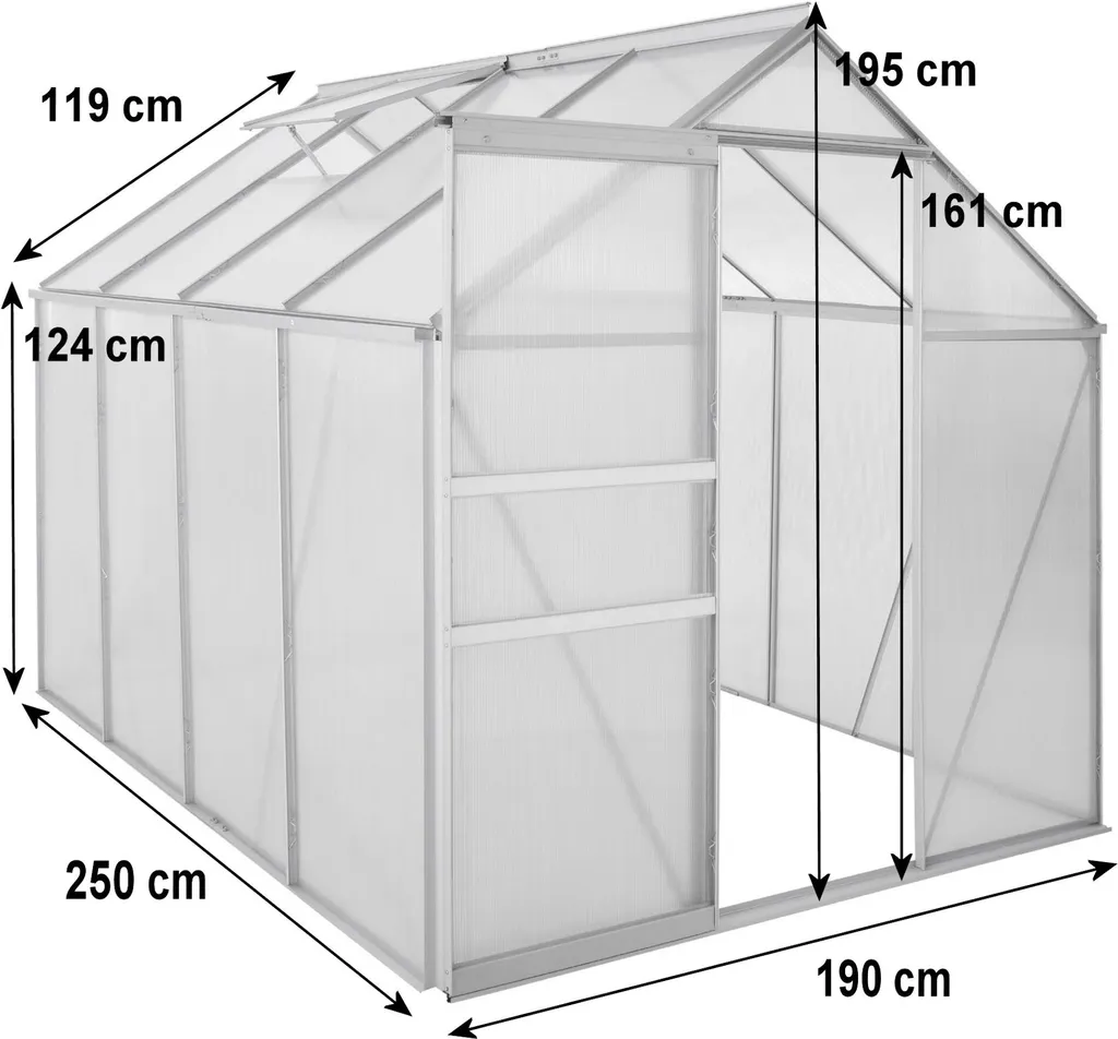 Zelsius Aluminium Gewächshaus, 310 X 190 Cm, 6 Mm Platten, Ca. 5,90 M²